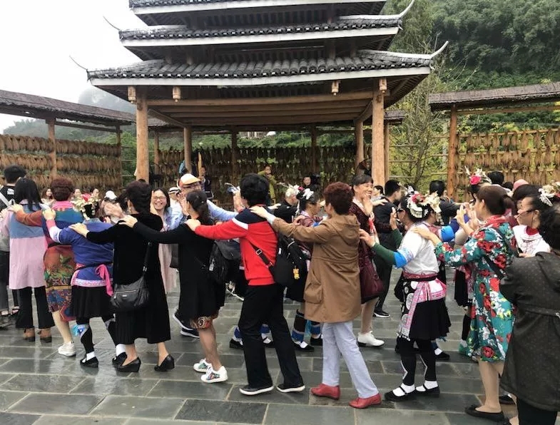 导游为我们解密长寿村人长寿的秘密,讲述着侗族的历史文化、古老的手工艺术,领略着侗族人的风土人情,探寻着民族银匠精湛的工艺,真切地感受村民古老、恬静、悠慢的生活,而自己也情不自禁沉下心来审视过去、享受生活。